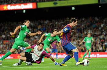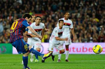 | PLAYER RATING | 8.5 Top of the Match 'Back to his brilliant best after an off-colour performance against Granada. Scored a first-half hat-trick as he converted a penalty and two other fine finishes. Came close to his 200th Barca goal with a free-kick in the second half and a late effort which went just wide.' |